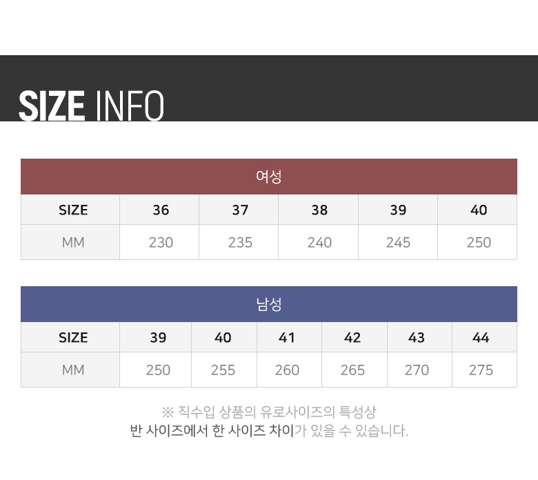 39(250) ~ 44(275) 굽높이:3cm